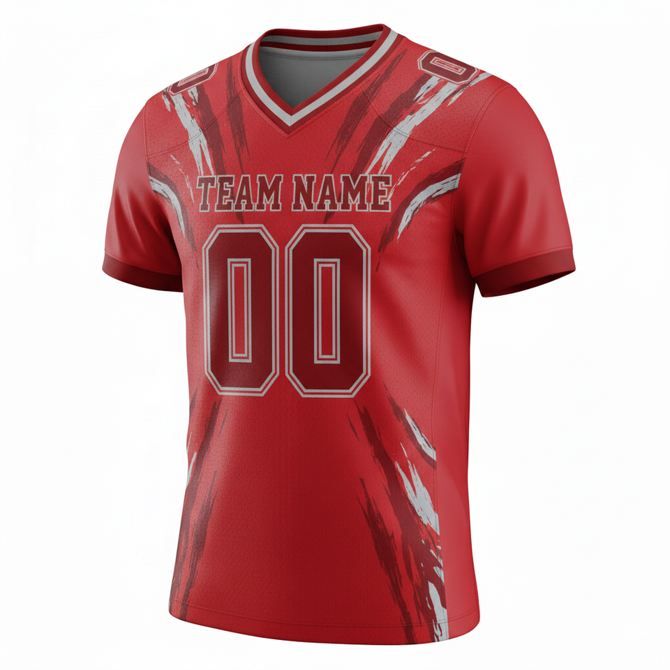 เสื้อซ้อมอเมริกันฟุตบอลแบบกำหนดเองสำหรับผู้ใหญ่ แขนสั้น ระบายอากาศได้ดี ผ้าตาข่าย ป้องกันแบคทีเรีย แห้งเร็ว มีตัวเลือกไซส์ใหญ่ ด้านหน้า