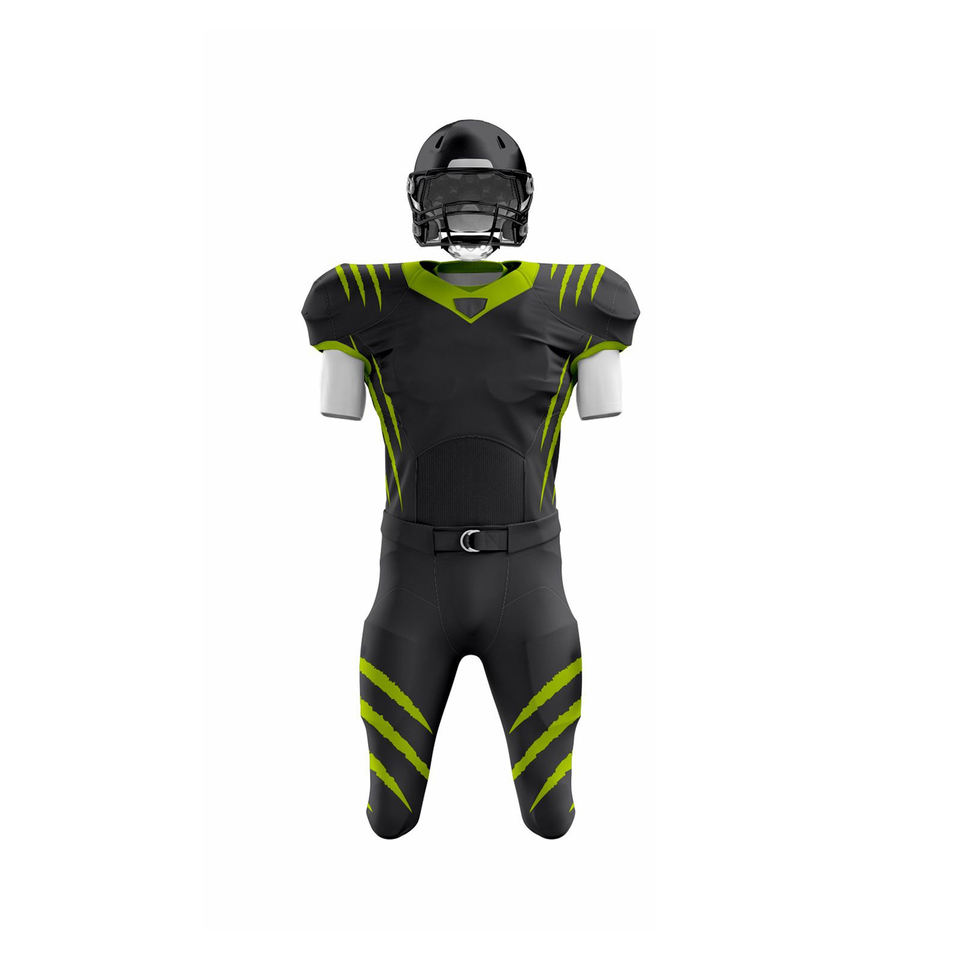 ชุดยูนิฟอร์มอเมริกันฟุตบอลแบบกำหนดเอง ผ้าโพลีเอสเตอร์ 220 GSM คุณภาพระดับมืออาชีพ พิมพ์ลายสองชั้นแบบซับลิเมชั่น คอวี ไซส์พลัส สำหรับทีมมืออาชีพ