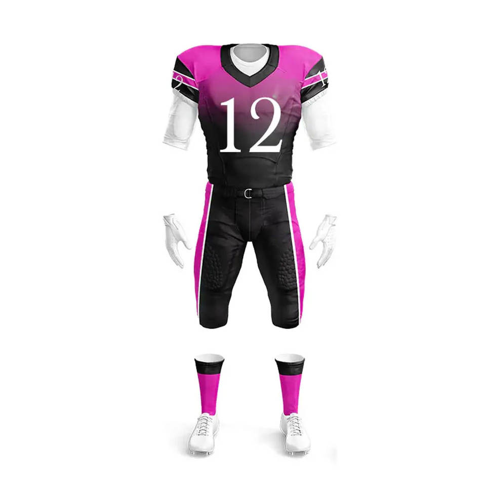 ชุดยูนิฟอร์มอเมริกันฟุตบอลแบบกำหนดเอง ชุดเต็ม เสื้อ กางเกง ดีไซน์แบบซับลิเมชั่น ผ้าระบายอากาศ ผลิตโดยโรงงานโดยตรง รับผลิตแบบ OEM ODM