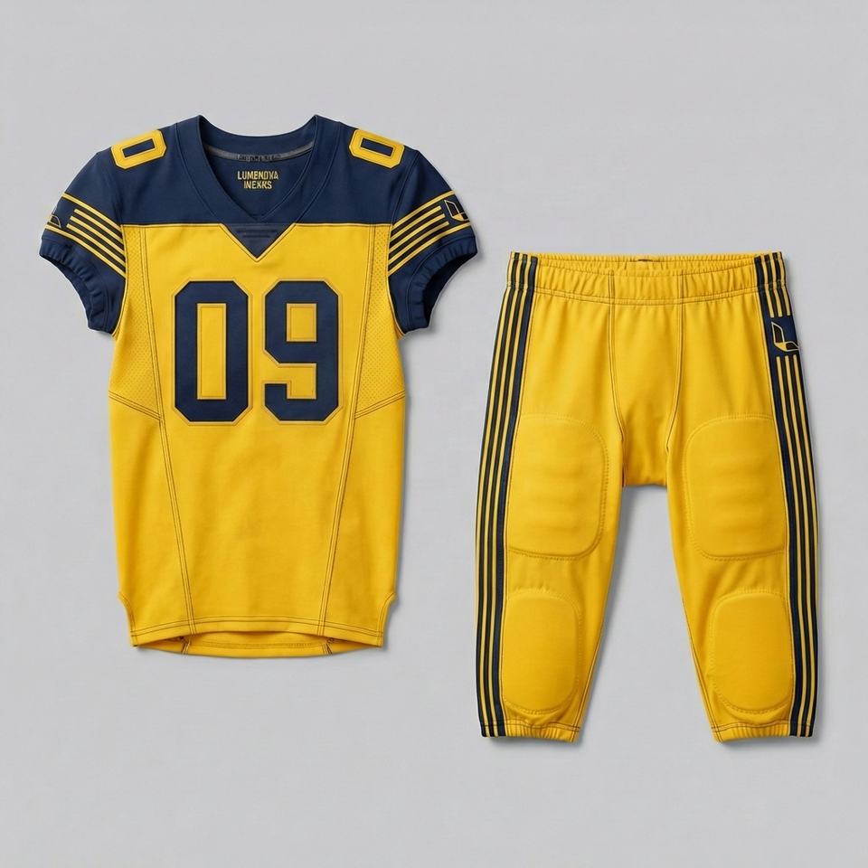 ชุดยูนิฟอร์มอเมริกันฟุตบอลแบบกำหนดเอง | เสื้อและกางเกงฟุตบอลแบบซับลิเมชั่น | เยาวชนและผู้ใหญ่ | ผู้ผลิตชุดฟุตบอลแบบ OEM