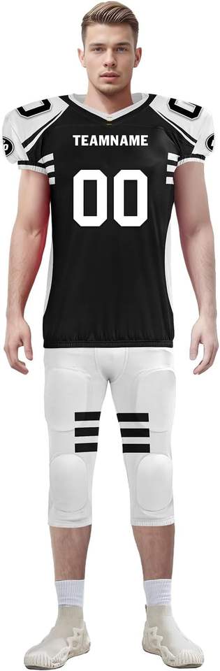 ชุดอเมริกันฟุตบอลแบบกำหนดเองสำหรับผู้ชาย ผ้าโพลีเอสเตอร์ 100% แห้งเร็ว ระบายอากาศได้ดี
