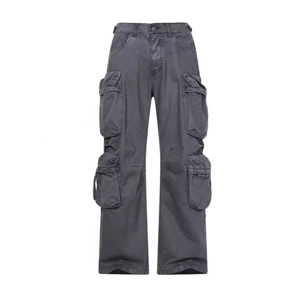 กางเกงลำลองสไตล์อเมริกันแบรนด์เทรนดี้สำหรับผู้ชาย สีกากี เสื้อผ้าผู้ชาย ฤดูใบไม้ร่วง ฤดูหนาว กางเกงยีนส์ทรงหลวมแบบฟอกสี