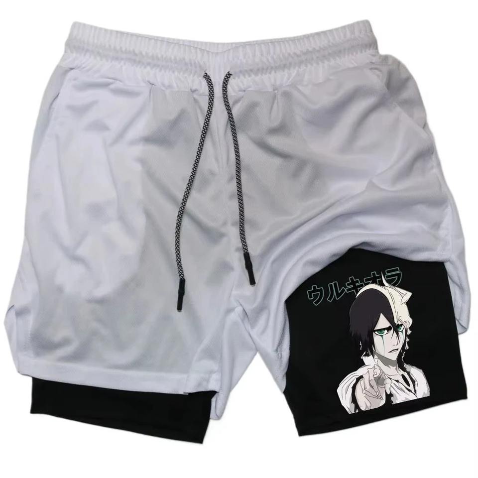 กางเกงขาสั้นผู้ชายพิมพ์ลายอนิเมะแบบ2 in 1แห้งเร็วระบายอากาศได้ดีสำหรับวิ่ง