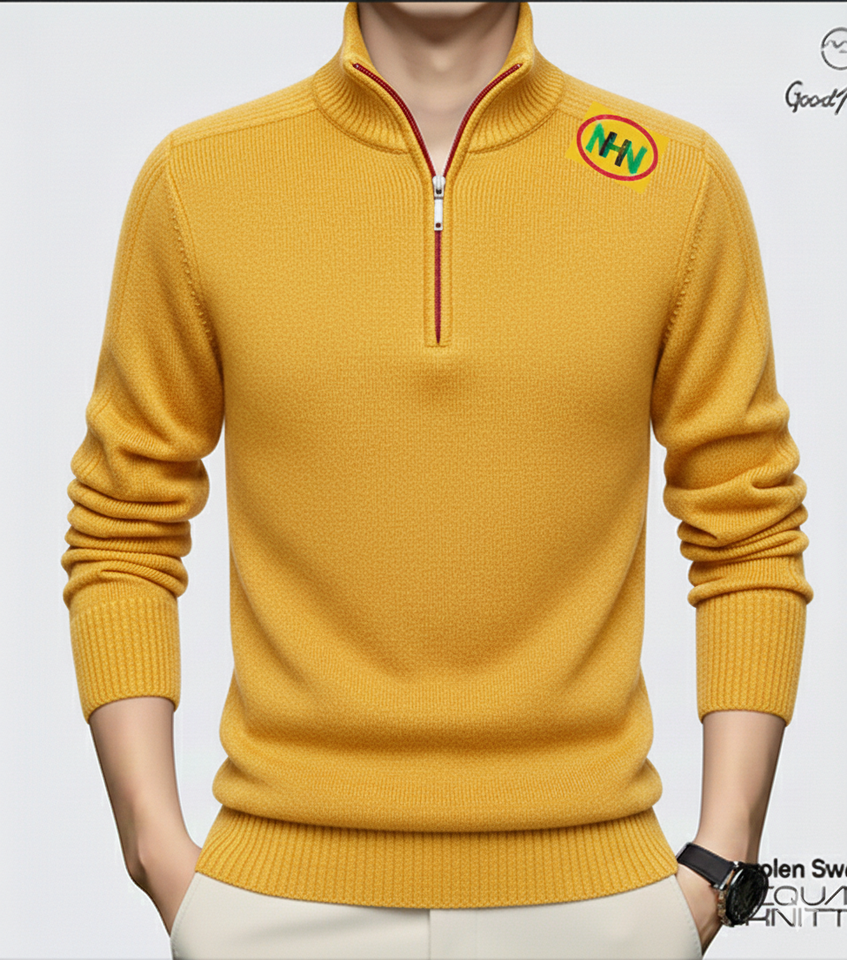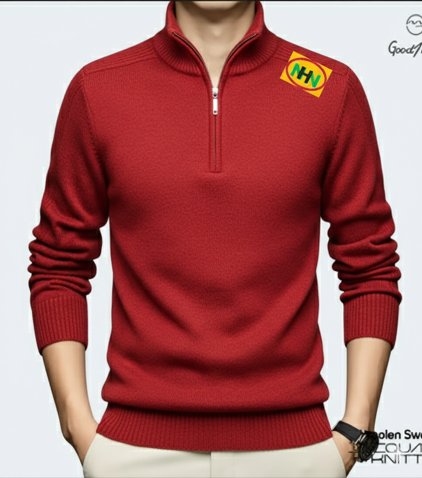 เสื้อสเวตเตอร์คอวีผู้ชายไซส์ใหญ่ ผ้าฝ้ายถักลายเคเบิ้ล กันหนาว พร้อมโลโก้ด้านหน้า ป้องกันริ้วรอย