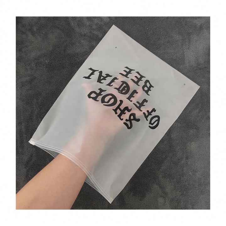 เครื่องแต่งกายที่กําหนดเองบรรจุแพ็คเก็ตพลาสติกถุงซิปล็อคพร้อมโลโก้ Frosted ซิปเสื้อผ้าบรรจุภัณฑ์ขายส่ง