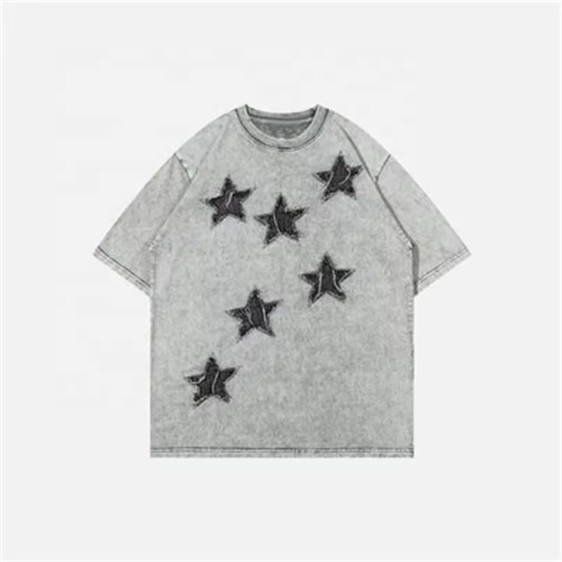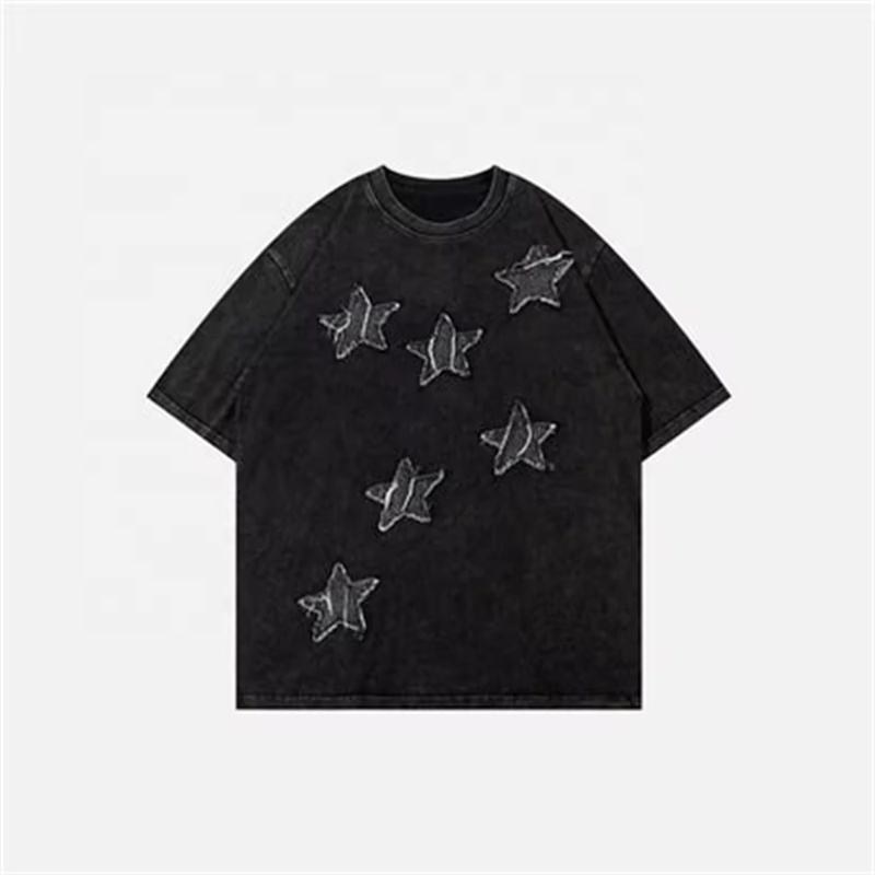 เสื้อยืดผู้ชายซักได้แอซิดแบบกรดสำหรับผู้ชายผ้าคอตตอน100% กราฟิกปักลายได้ตามต้องการ