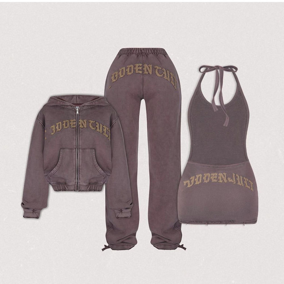 ชุดกางเกงขาสั้นผ้าฝ้ายมีฮู้ดสำหรับผู้หญิงแบบวินเทจผ้าเฟรนช์เทอร์รี่แบบรูดซิปดีไซน์สีทึบออกแบบได้ตามต้องการ