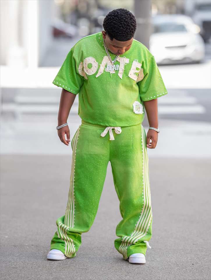 ชุดวอร์มสองชิ้นสำหรับเด็กกางเกงวอร์มสองชิ้นผ้าคอตตอนสำหรับ100% งานปักผ้าปะติดแบบกำหนดเอง2025