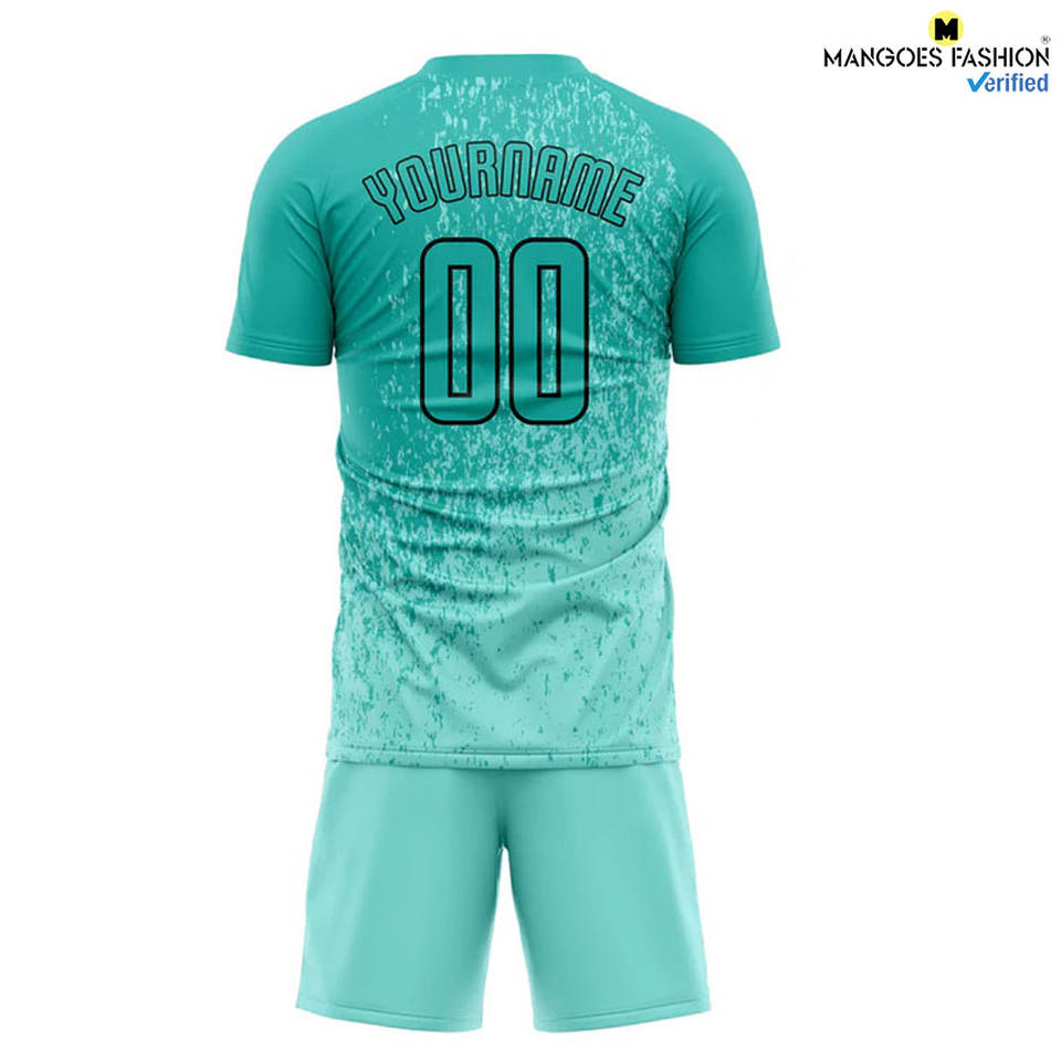 Custom Aqua Aqua-Black Sublimation Soccer Uniform Jersey High-Performance Athletic Wear Polyester Wicking Knit Pinhole Mesh