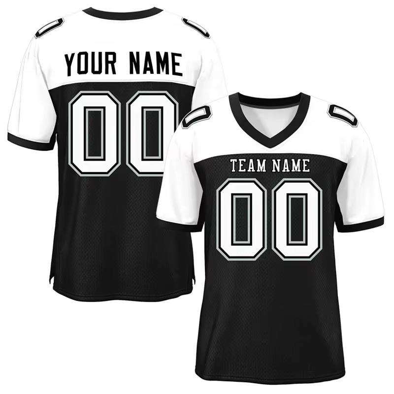 เสื้อกีฬาฟุตบอลอเมริกันสีฟ้าน้ำกำหนดเองชื่อทีมคอวีสั้นระบายอากาศได้ดีป้องกันแบคทีเรีย