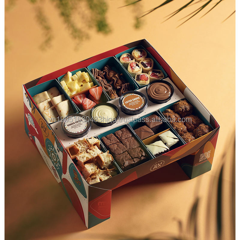กล่องขนมแบบมีช่องสำหรับเทศกาลรอมฎอนแบบอาหรับ พร้อมฝาปิดแบบปรับเปลี่ยนได้ ฐานวางแบบตั้งโต๊ะในตัว สำหรับบรรจุภัณฑ์จานขนม