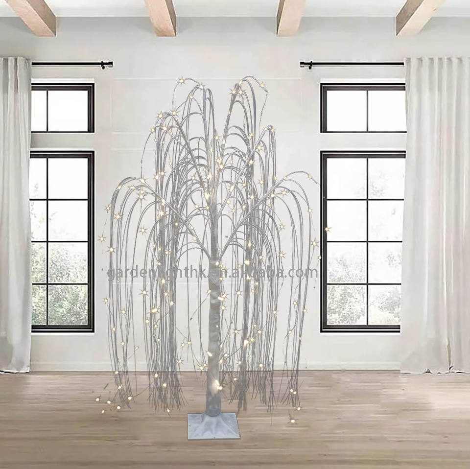ไฟประดับ LED แบบสายทองแดงเทียม 600 ดวง ใช้ไฟ DC ระดับการป้องกันน้ำ IP44 รูปต้นหลิว สำหรับตกแต่งภายใน/ภายนอกบ้านในเทศกาลคริสต์มาส