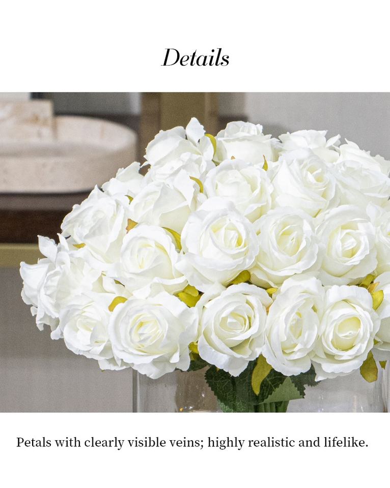 วัสดุไหม: การใช้วัสดุไหมทำให้มั่นใจได้ว่ามีลักษณะที่สมจริงและมีคุณภาพสูง ทำให้เหมาะสมกับสภาพแวดล้อมการตกแต่งที่หลากหลาย