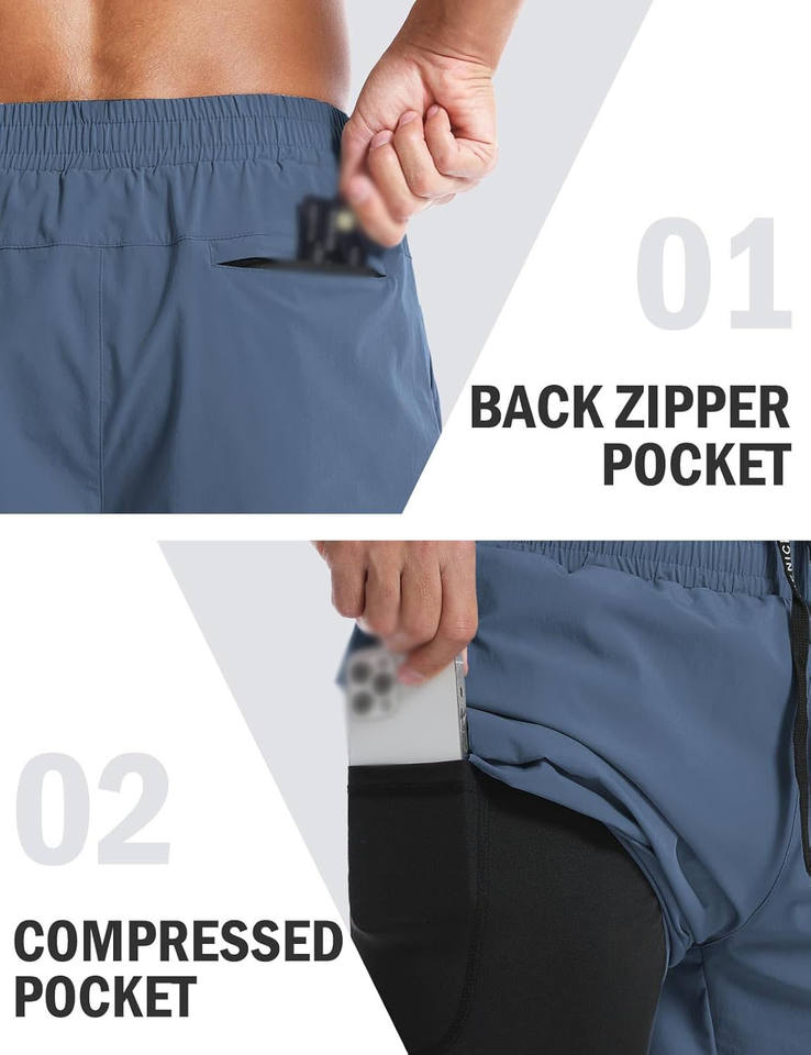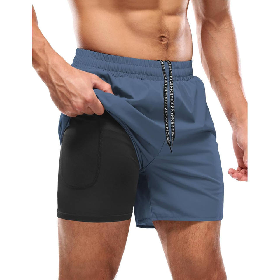 กางเกงขาสั้นตาข่ายสำหรับเล่นกีฬาออกกำลังกายฟิตเนสยิมวิ่งออกกำลังกายกระเป๋าใส่โทรศัพท์สไตล์สปอร์ตออกแบบได้ตามต้องการ