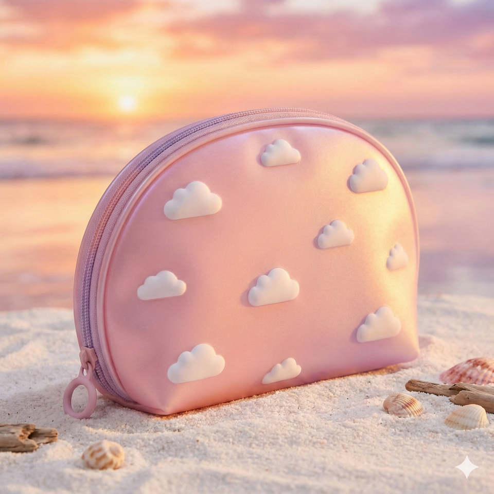 Custom Aura Gradient Matte Cosmetic Bag 3D Puff Print Cloud Pattern Shell Shape Waterproof Makeup Pouch With Rubber Puller