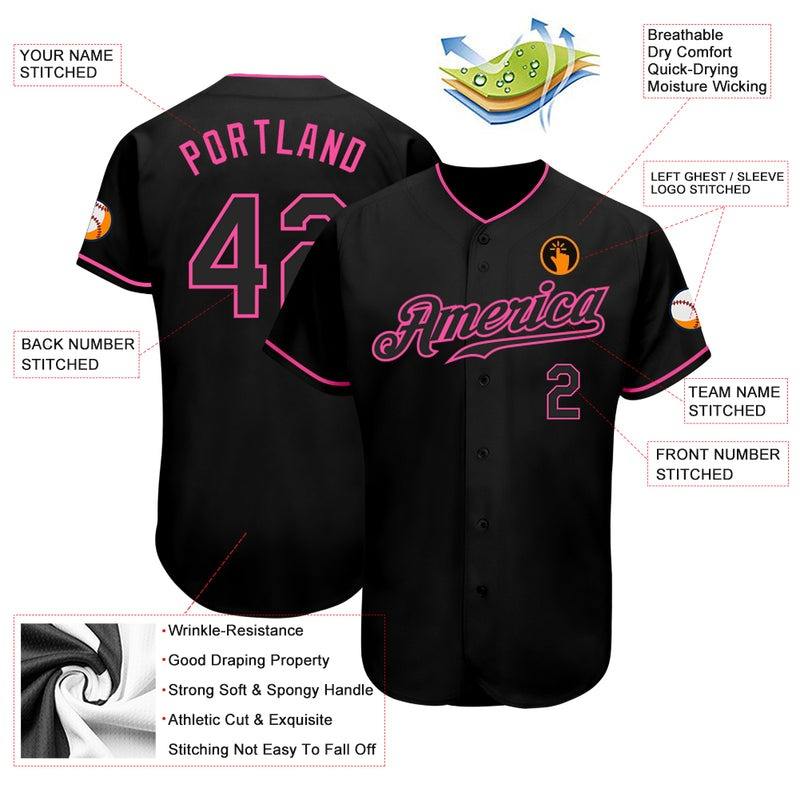 เสื้อกีฬาเบสบอลแท้สีดำสีชมพูพร้อมดีไซน์พิมพ์ลายออกแบบได้ตามต้องการ