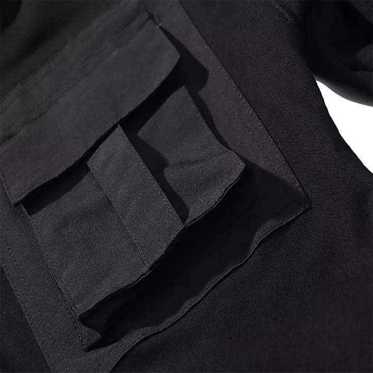 Custom Autumn 100% Cotton Tie-Dye Front Logo Boxy Street Wear Oversized Men Cargo Pullover Hoodie with Multi Pockets