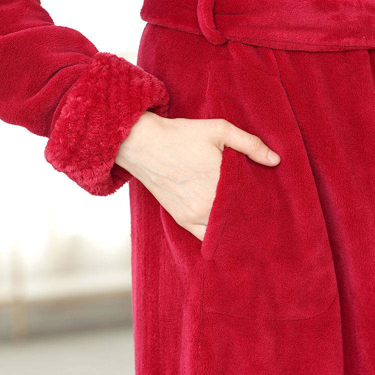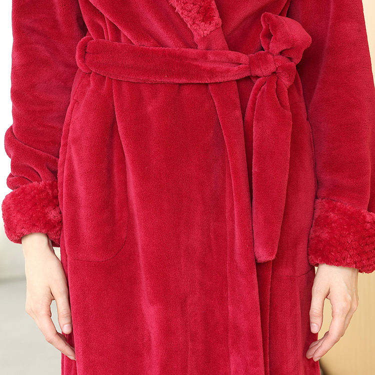Custom Autumn High-quality Long Sleeved Women's Fleece Bathrobe 100% Polyester Breathable Quick Dry Elastic Waist