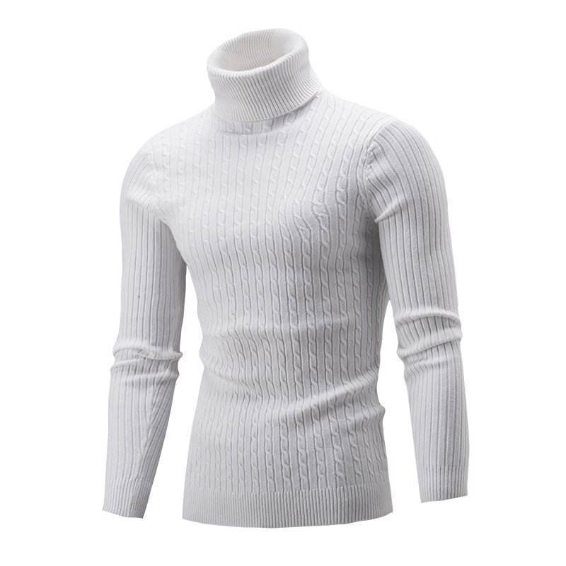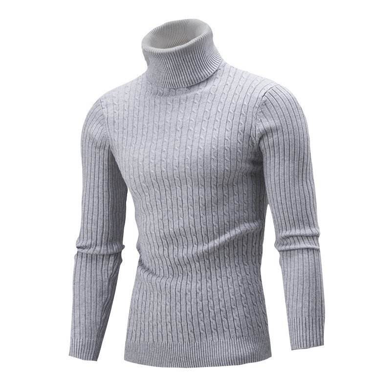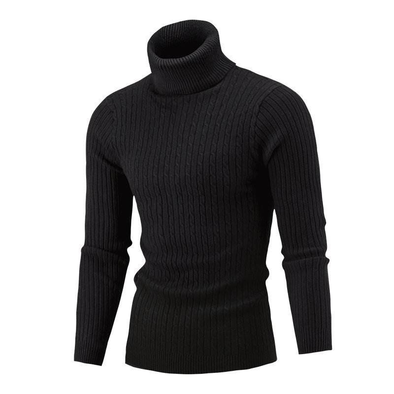 เสื้อสเวตเตอร์คอเต่าของผู้ชายเสื้อสเวตเตอร์สีทึบแบบสวมหัวซักได้สำหรับฤดูใบไม้ร่วงฤดูหนาว
