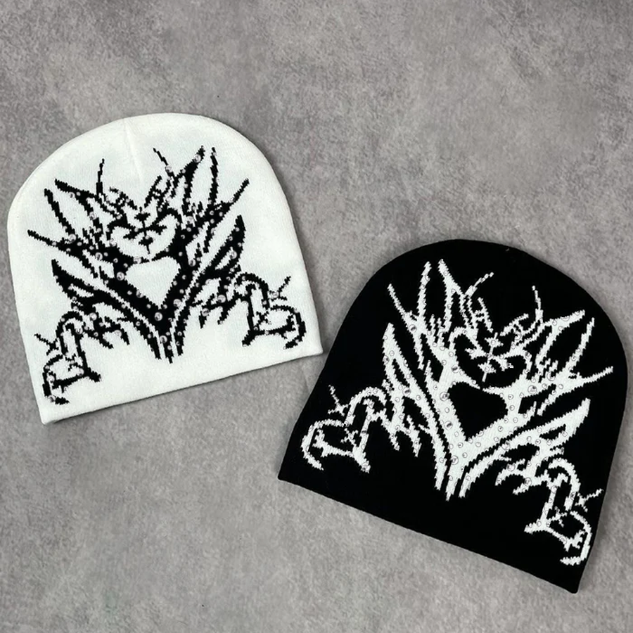หมวกบีนนี่ถักลายกราฟิก Y2K สไตล์สตรีทแบบย้อนยุค สำหรับฤดูใบไม้ร่วงและฤดูหนาว แบบสองด้าน สำหรับผู้ชาย ผู้หญิง และทุกเพศ