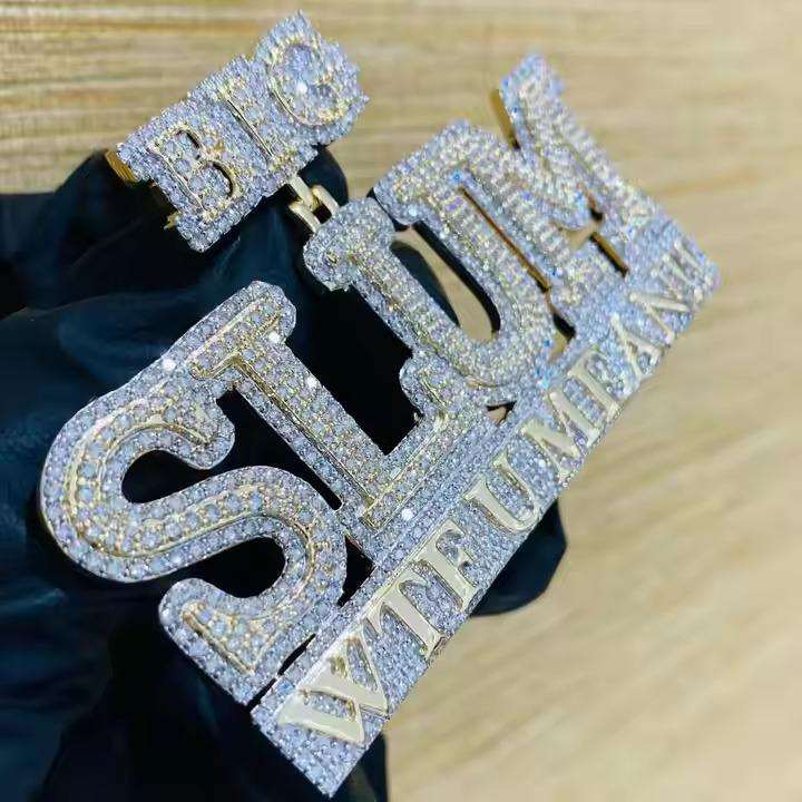 เสื้อสลัมขนาดใหญ่ที่กำหนดเองได้ WTE U หมายถึงจี้แบบเย็น VVS Moissanite ฮิปฮอปสุดหรูแวววาวเงินสเตอร์ลิงชุบทองห่วงโซ่ตัวอักษรยูนิเซ็กส์