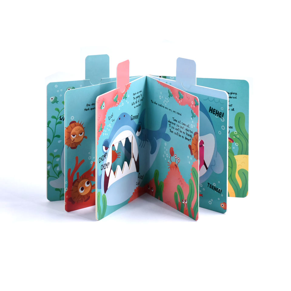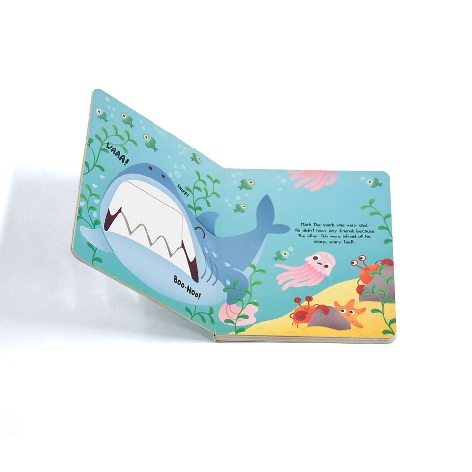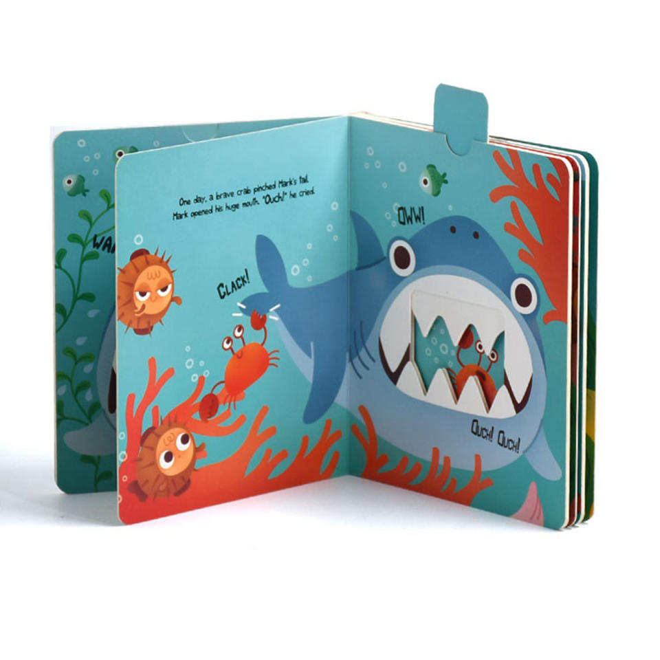 หนังสือเด็กแบบโต้ตอบหนังสือกระดานแบบโต้ตอบสมุดนิทานรูปสัตว์น่ารักธีมปลาฉลามออกแบบได้ตามต้องการ