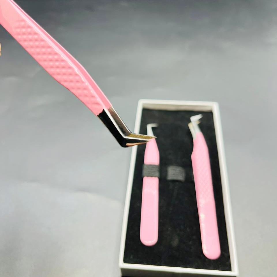 แหนบปลายขนตาสแตนเลสสีชมพูสำหรับเด็กแหนบปลายเพชรแบบกำหนดเองโลโก้อย่างยั่งยืน