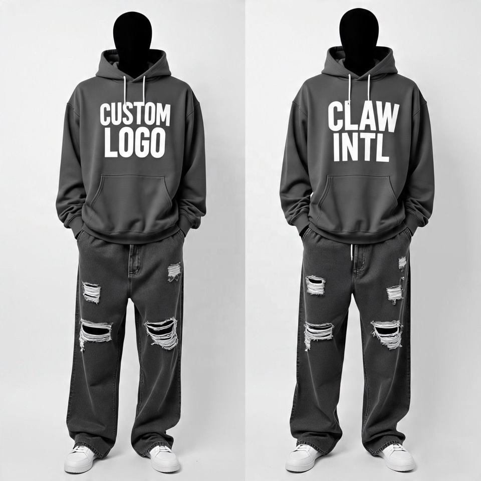 ชุดวอร์มผ้าฝ้ายโอเวอร์ไซส์ใส่ได้ทั้งชายและหญิงชุดวอร์มผ้าคอตตอนธรรมดาทรงหลวมพอดีตัวออกแบบได้ตามต้องการ