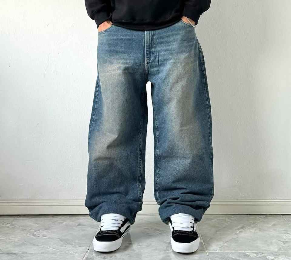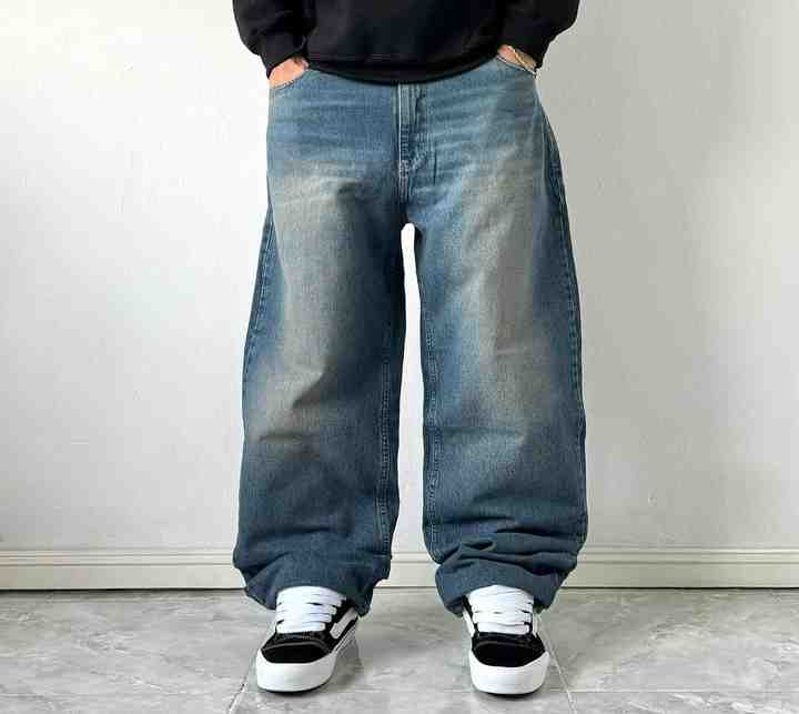 กางเกงยีนส์ทรงหลวมแบบสั่งทำพิเศษสำหรับผู้ชาย กางเกงขายาวทรงตรงแบบวินเทจ กางเกงยีนส์ผู้ชายทรงหลวมขนาดใหญ่พิเศษ ผู้ผลิตกางเกงยีนส์ผู้ชาย