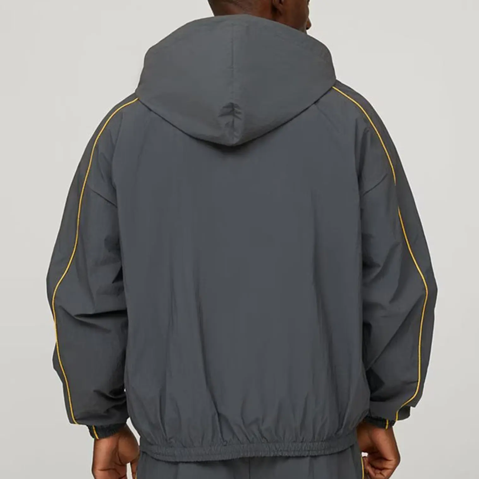 ชุดวอร์มกันลมแบบมีฮู้ด กางเกงขายาว ผ้าโพลีเอสเตอร์/คอตตอน กันน้ำ พิมพ์ลายสะท้อนแสง สำหรับฤดูหนาว