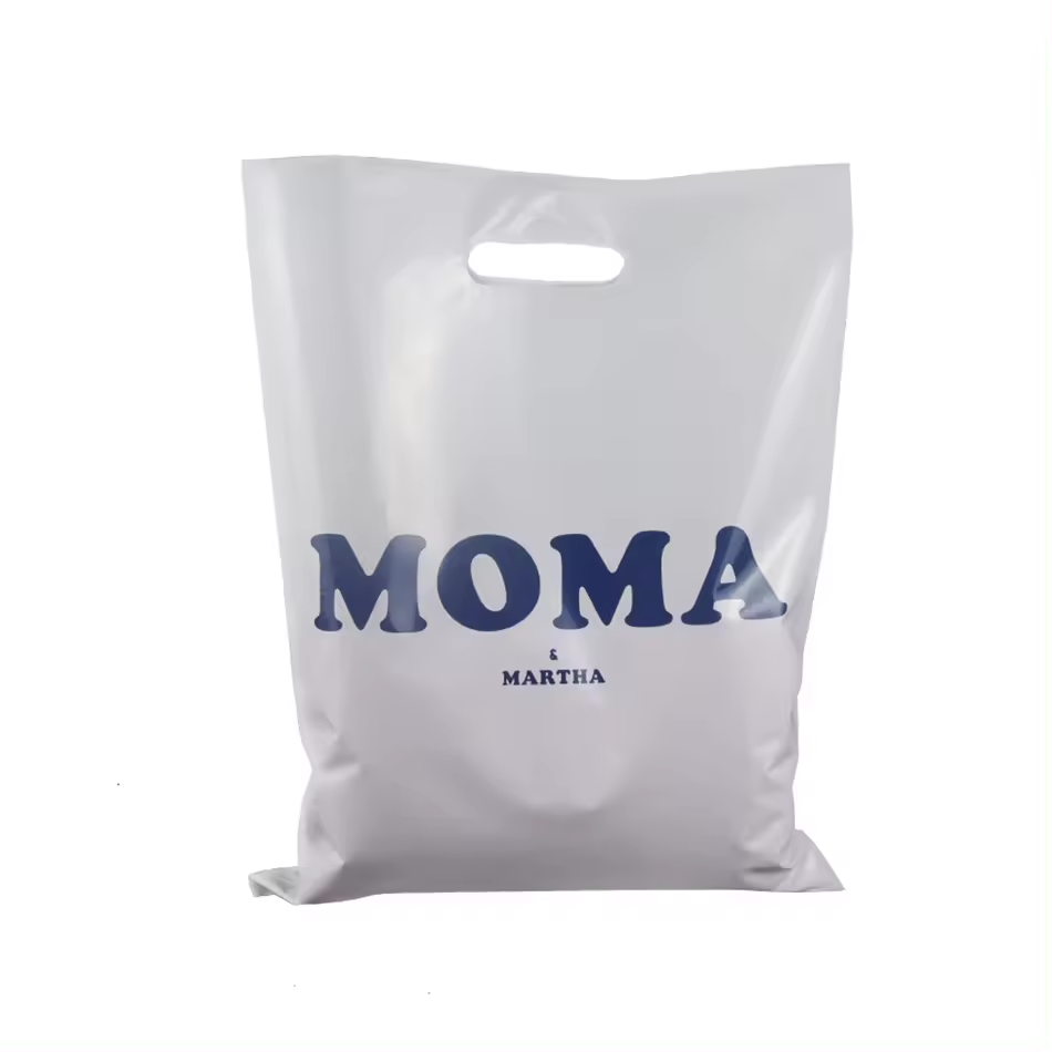 ถุงพลาสติก PE แบบไดคัทสำหรับร้านขายของกระจุกกระจิกและช้อปปิ้งลูกกวาดพร้อมที่จับออกแบบโลโก้ได้ตามต้องการ