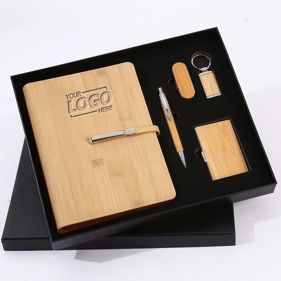 ชุดของขวัญไม้ไผ่แบบกำหนดเอง: โลโก้ไดรฟ์ USB สมุดบันทึกและพวงกุญแจ-ของขวัญขององค์กรที่เป็นมิตรกับสิ่งแวดล้อม