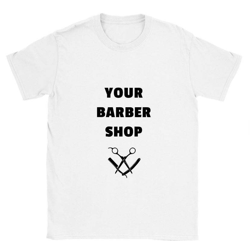 เสื้อยืดสไตลิสที่มีชื่อทางธุรกิจสำหรับตัดผมตามสั่งร้านทำผม