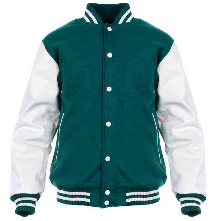 แจ็คเก็ตหนังปักโลโก้สำหรับผู้ชายแจ็คเก็ตเบสบอลสีน้ำตาล