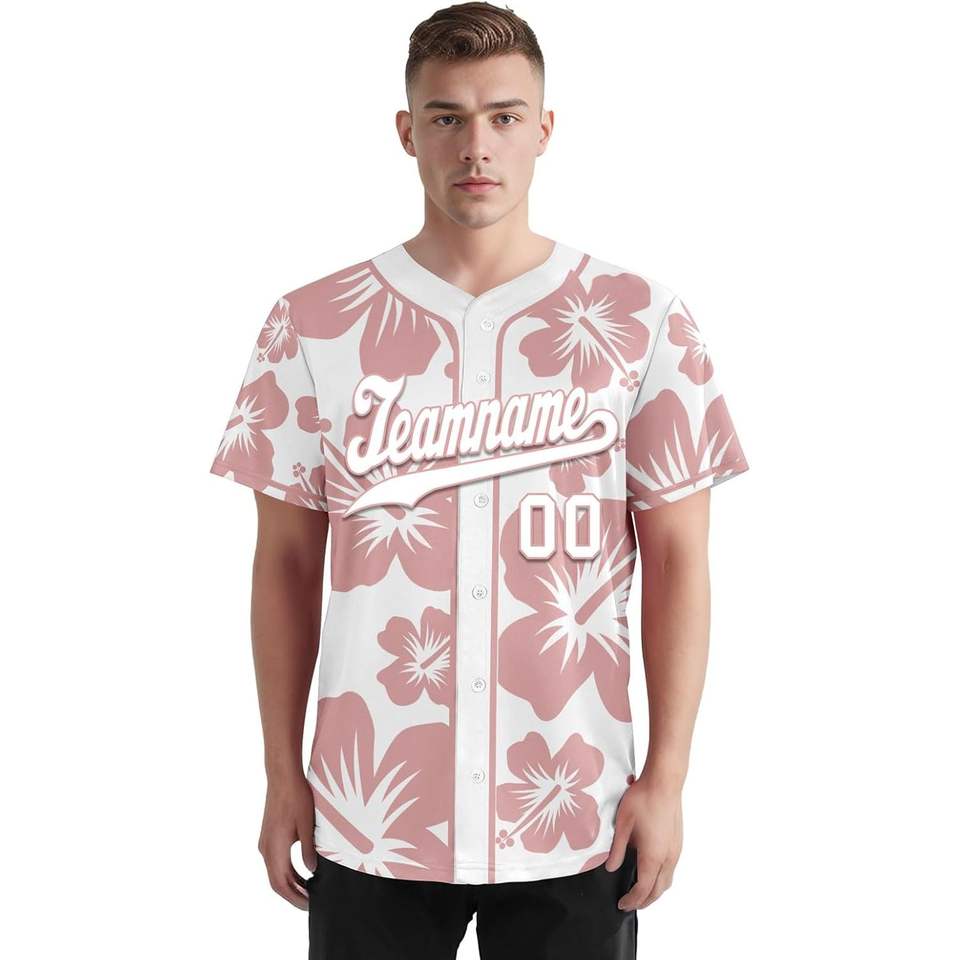 เสื้อเบสบอลออกแบบได้ตามต้องการเสื้อซอฟต์บอลแบบมีกระดุมลายดอกไม้ฮิบิสคัสพิมพ์ลายดอกไม้เสื้อทีมเสื้อยืดนุ่มระบายอากาศได้ดี