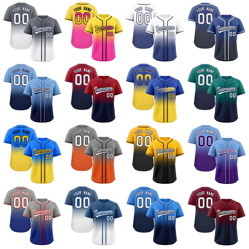 เสื้อเบสบอลสีฟ้าสีดำไล่ระดับสีสำหรับเล่นกีฬาระบายอากาศได้ดี