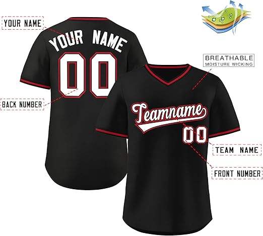 เสื้อเบสบอลคอวีสำหรับผู้ชายผู้หญิงและเยาวชนเสื้อกีฬาฮิปฮอปเย็บหมายเลขชื่อบุคคล