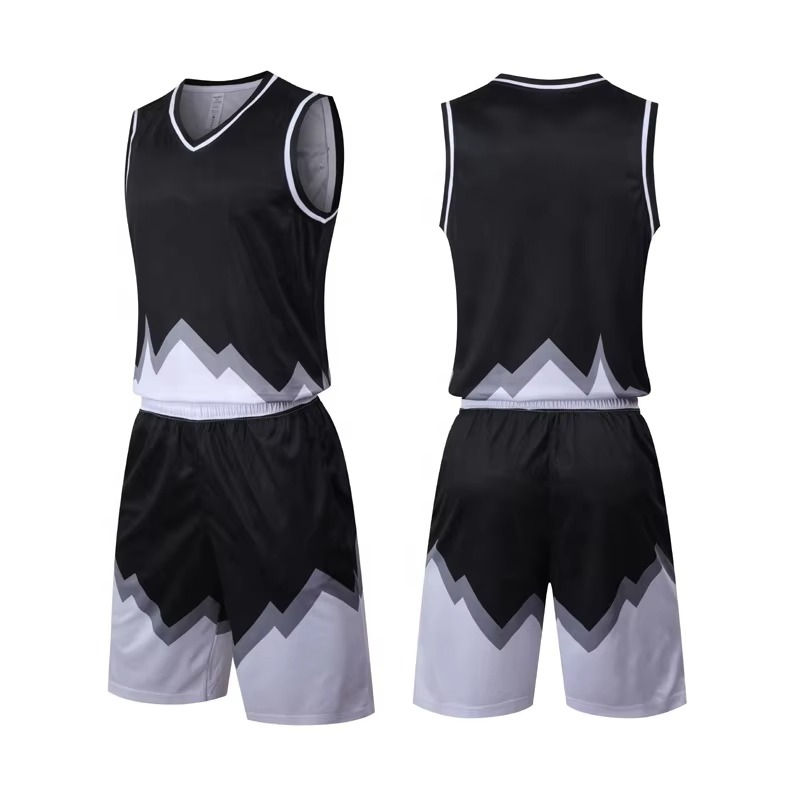 ชุดบาสเก็ตบอลแบบกำหนดเอง ชุดกีฬาระบายอากาศได้ดี สีดำ พิมพ์ลายแบบซับลิเมชั่น เสื้อและกางเกงขาสั้นสำหรับชุดทีมแบบกำหนดเอง