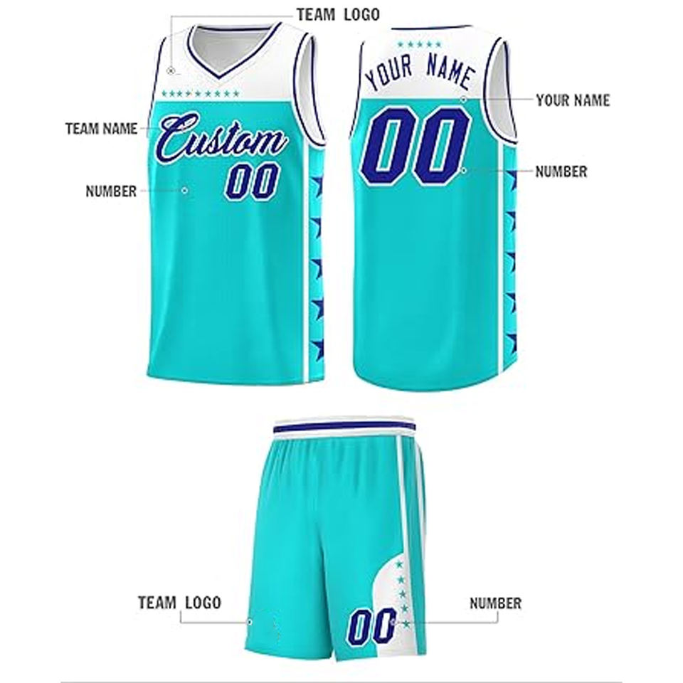 Custom Basketball Uniform Digital Print Jersey Shorts Set Custom Logo Name Number College Training Sportswear V-neck Sleeveless