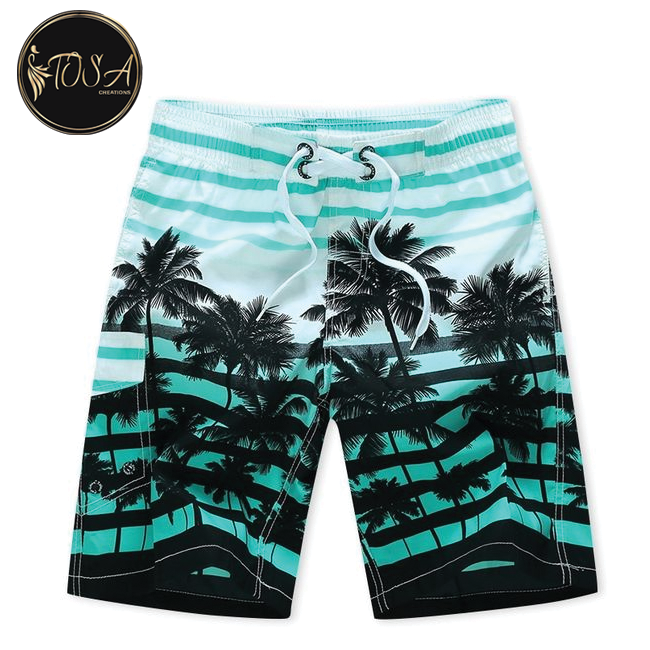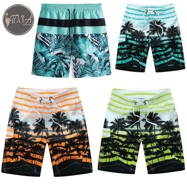 กางเกงขาสั้นชายหาดสำหรับผู้ชายชุดว่ายน้ำสำหรับผู้ชายกางเกงขาสั้นสำหรับฤดูร้อน100% ผิวสีพีชพิมพ์ลายโพลีเอสเตอร์
