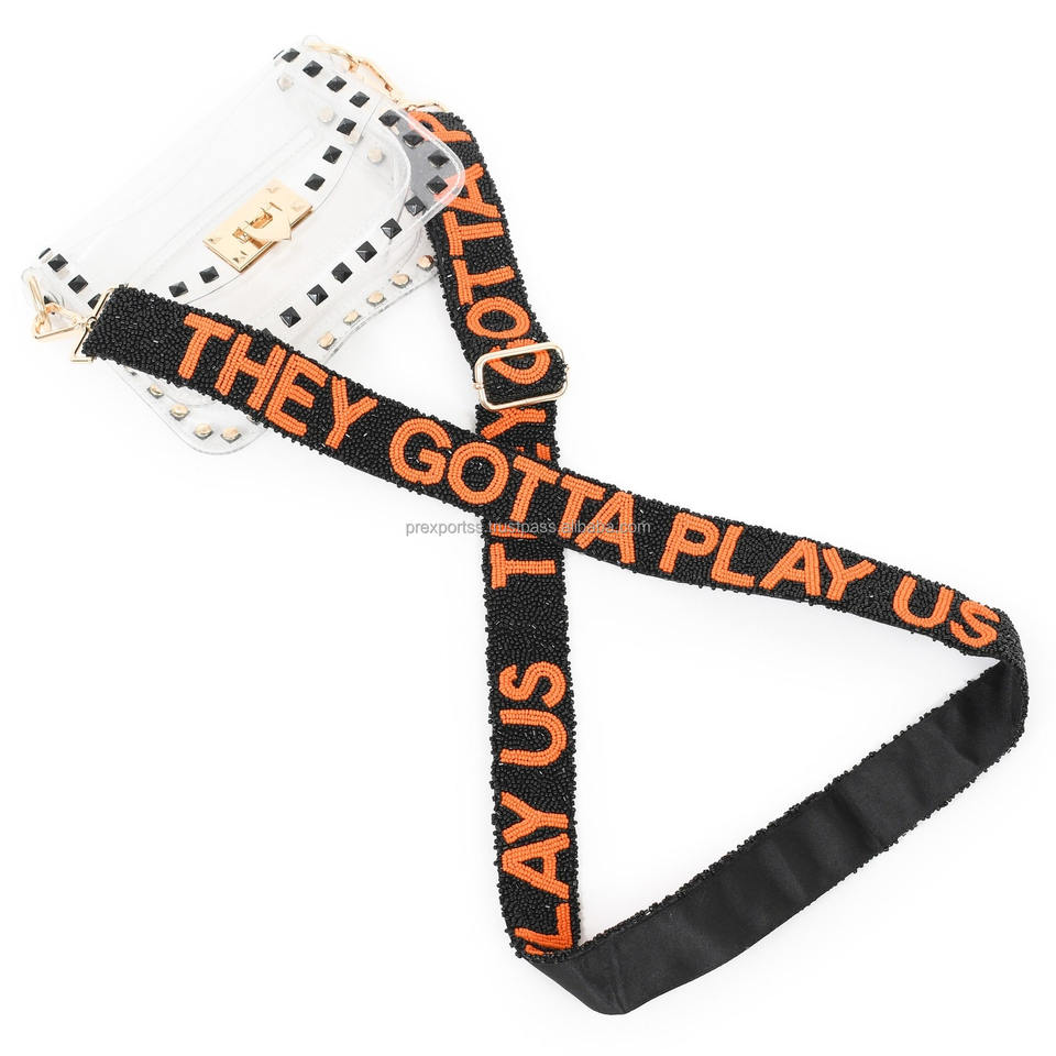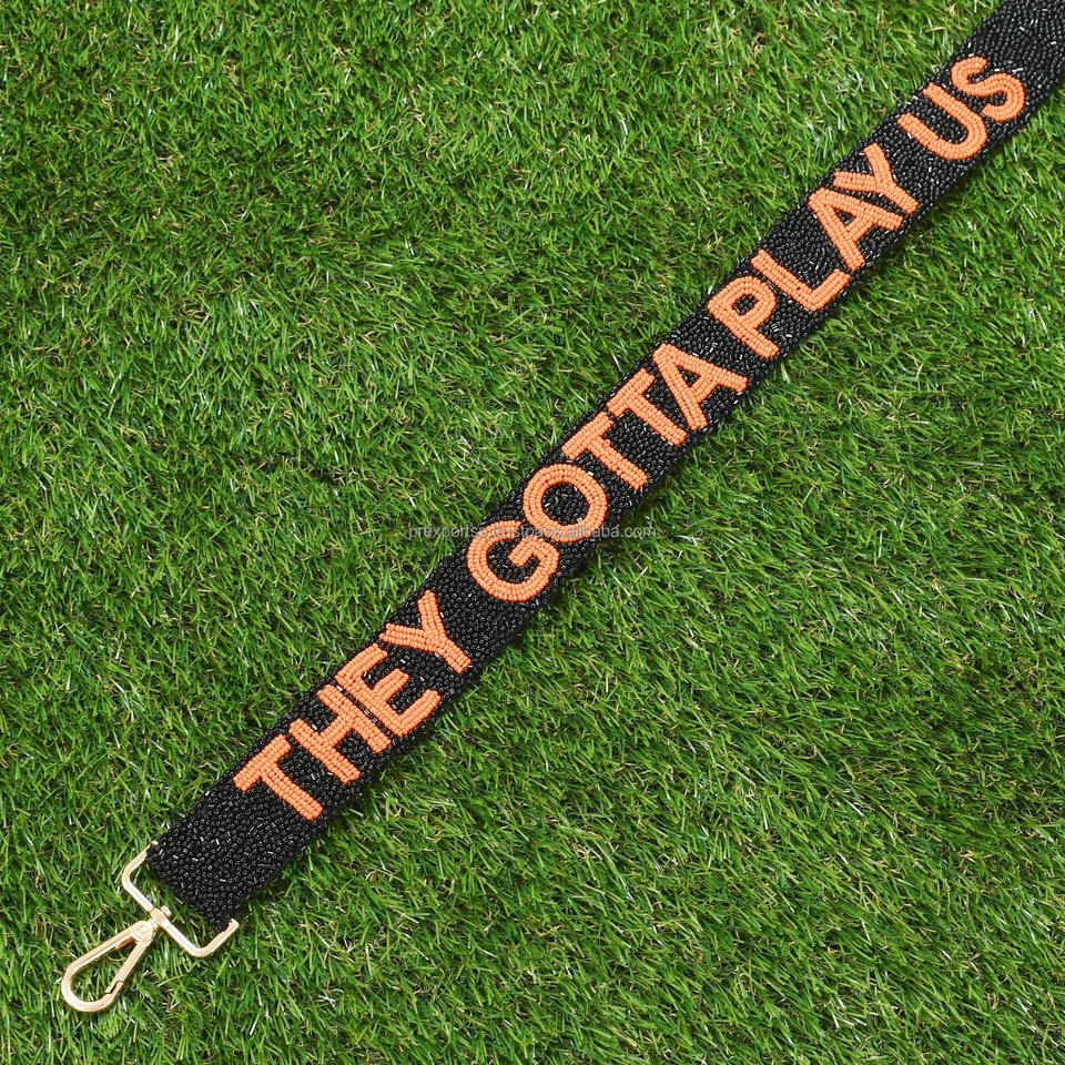 สายกระเป๋าลูกปัดแบบสั่งทำพวกเขาต้องเล่นกับเรา | สายคาดตัวลูกปัดทำด้วยมือพร้อมข้อความ | สายคล้องไหล่ปรับได้