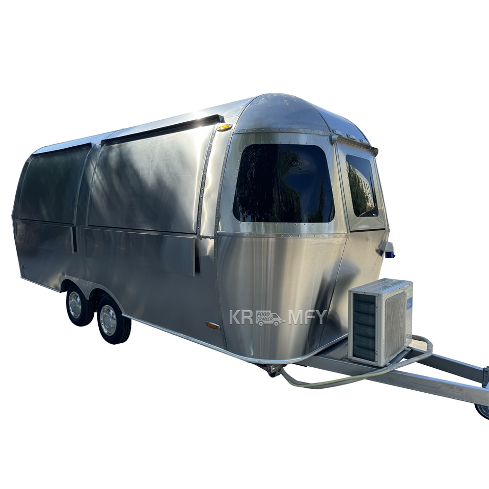 รถขายอาหารเคลื่อนที่แบบกำหนดเองสวยงาม ทำจากสแตนเลส พร้อมอุปกรณ์ครัวครบครัน สำหรับขายไอศกรีม กาแฟ และอาหารอื่นๆ
