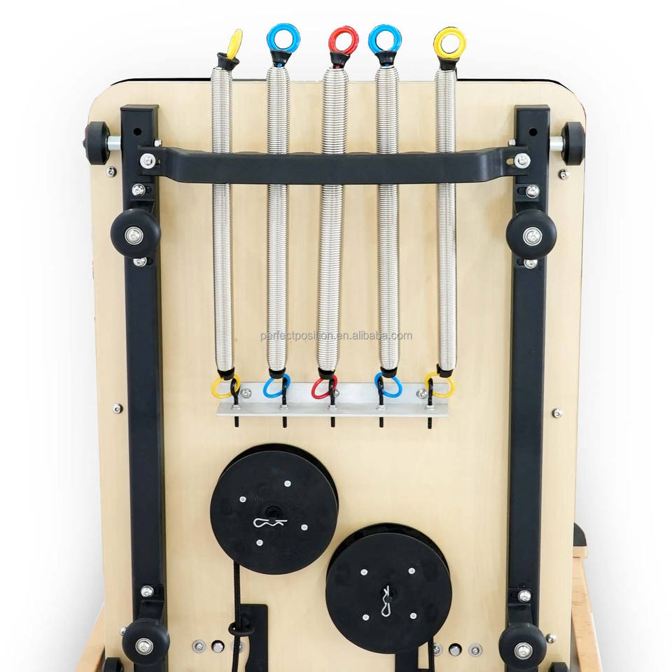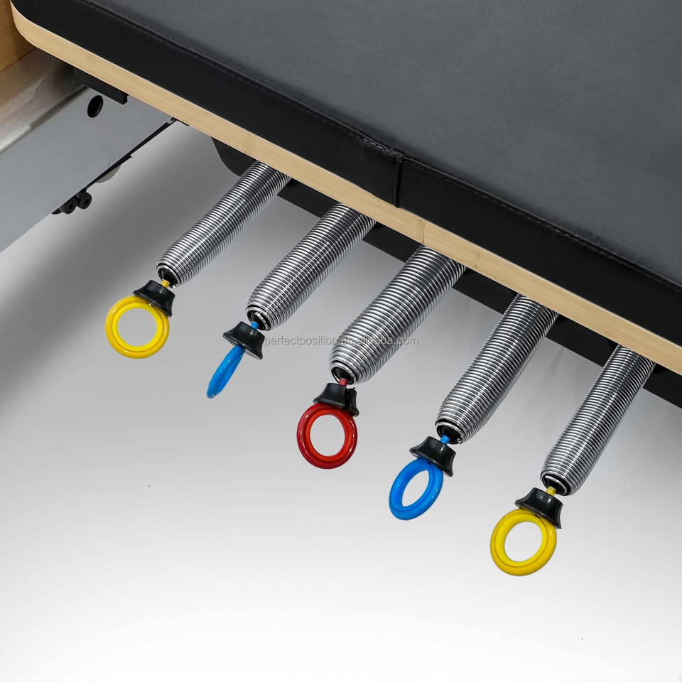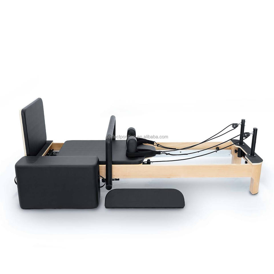 เตียงพิลาทิสแบบเต็มรูปทรงสี่เหลี่ยมคางหมู ทำจากไม้บีชสั่งทำพิเศษ หุ้มด้วยหนังไมโครไฟเบอร์ สำหรับสตูดิโอโยคะและศูนย์ฟื้นฟูสมรรถภาพ