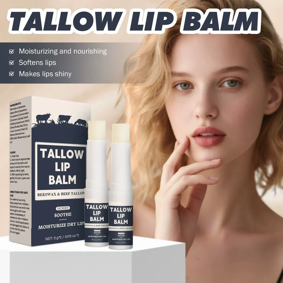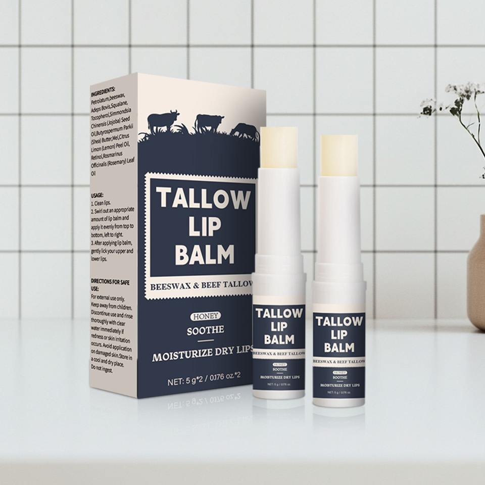 Custom Beef Tallow 5g*2 Lip Balm Moisturizing Daily Use for Dry Chapped Lips
