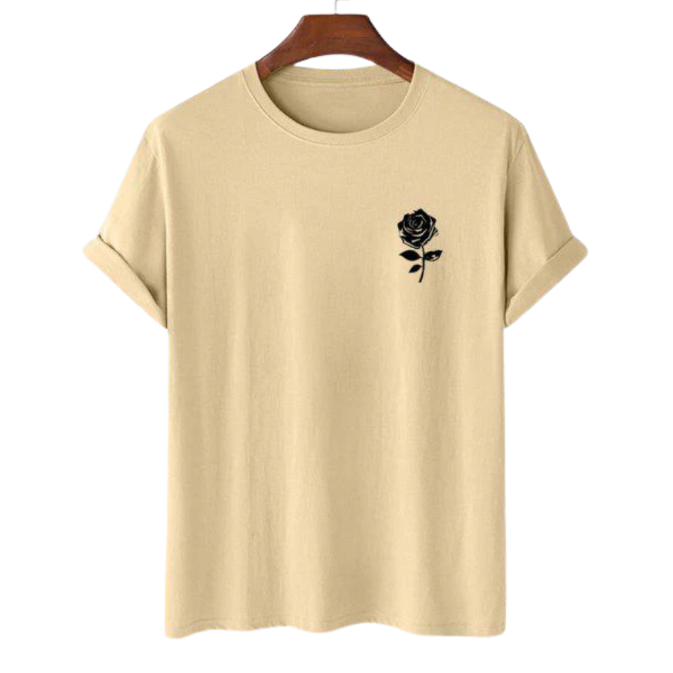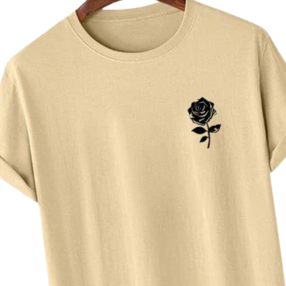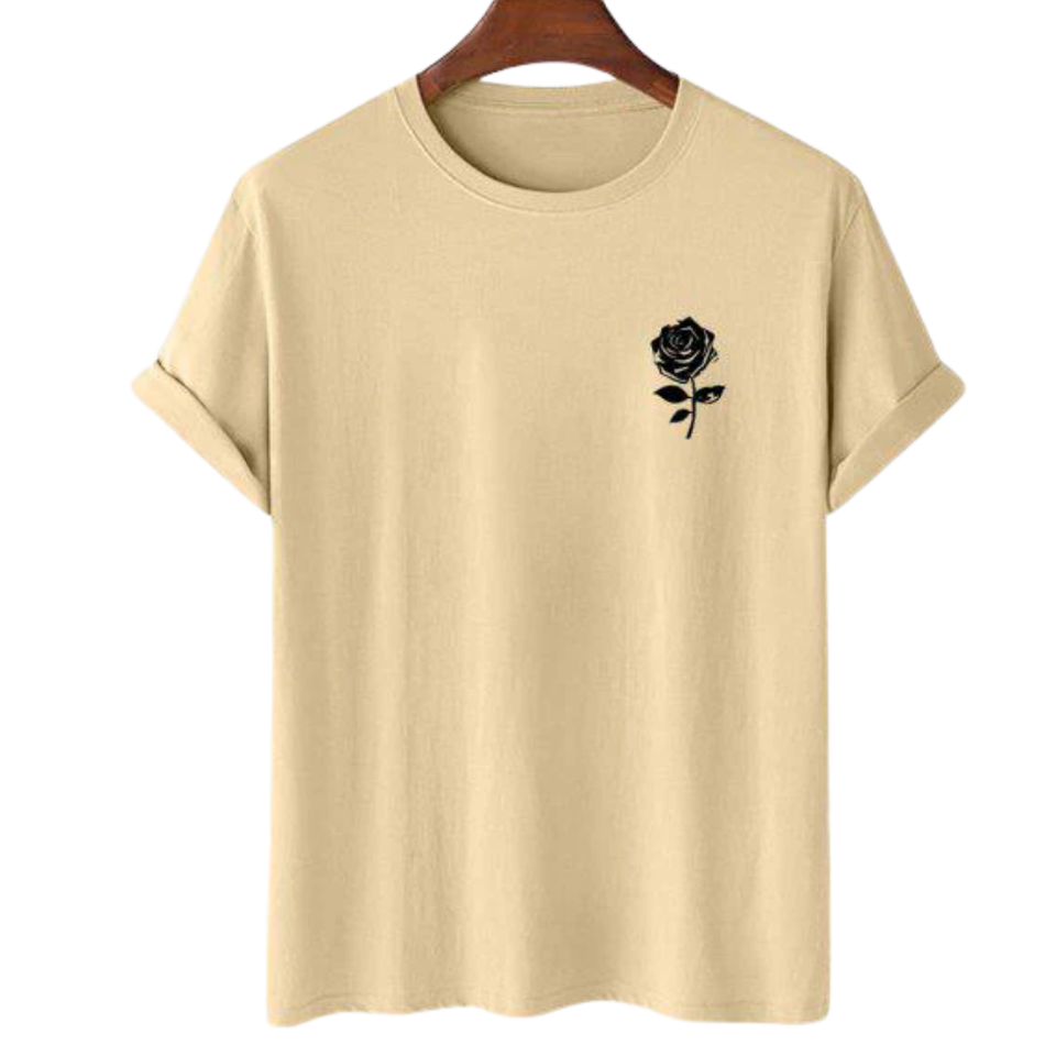 เสื้อยืดพิมพ์ลายดอกกุหลาบสีเบจอ่อยสีเบจผ้าคอตตอนเนื้อนุ่มใส่สบายแฟชั่นสตรีทแวร์