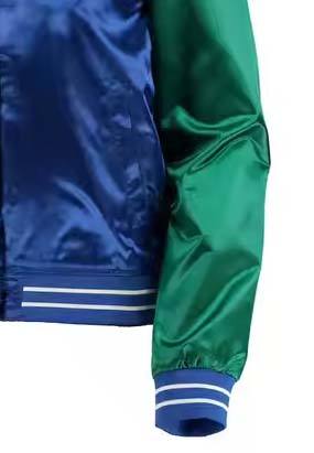 แจ็คเก็ตเบสบอลแบบ Letterman สีน้ำเงินซาตินสุดหรู พร้อมแขนเสื้อสีเขียว คุณภาพพรีเมียม สำหรับวิทยาลัย
