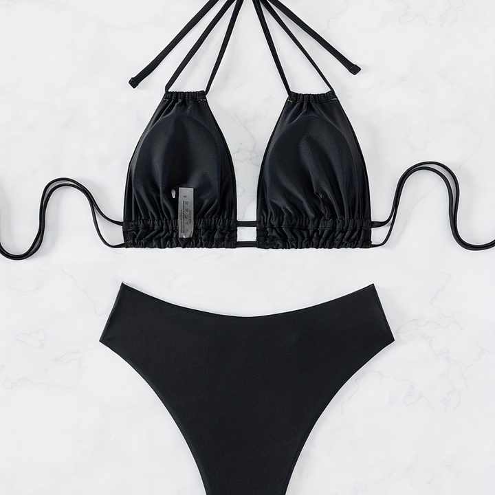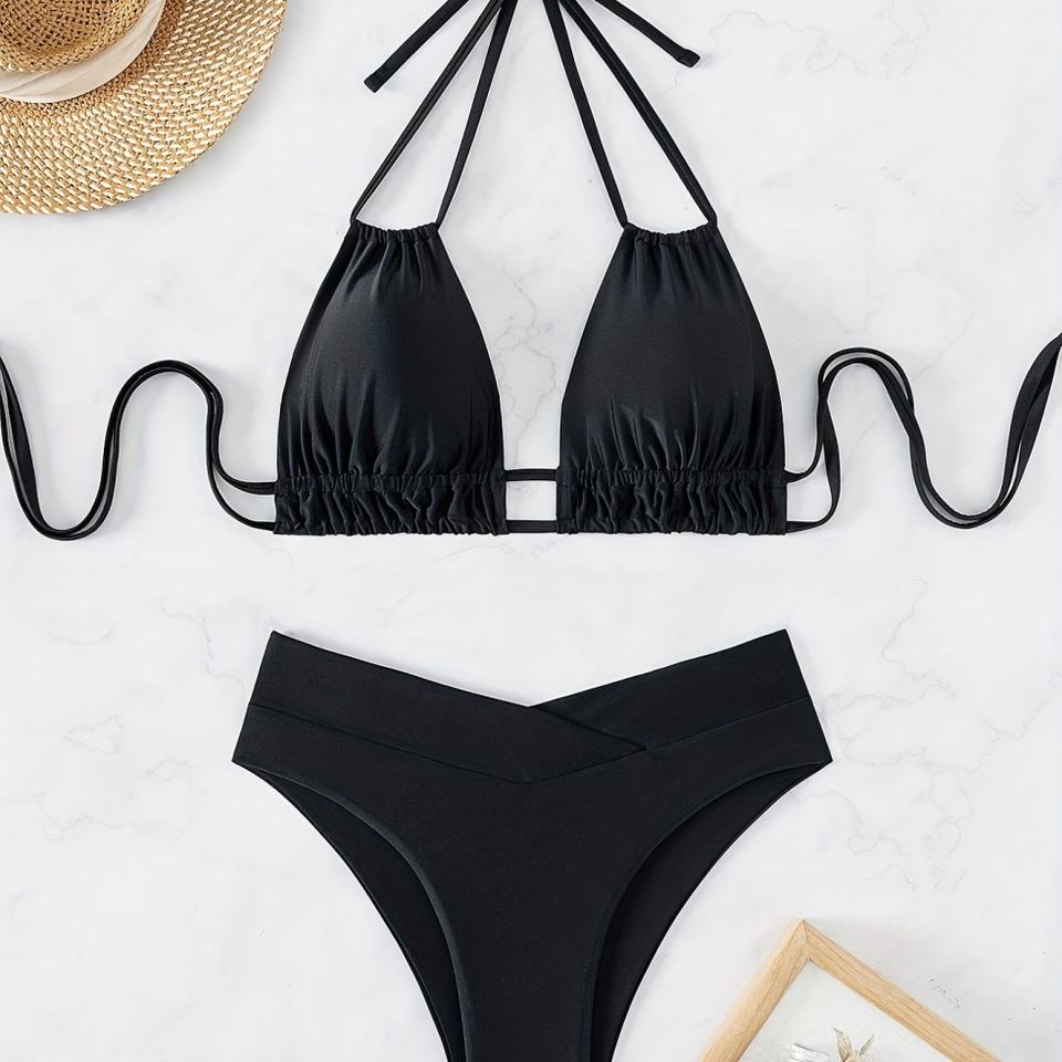 ผู้ผลิตบิกินี่แบบสั่งทำ ชุดว่ายน้ำทูพีซสีดำ ผ้ายืดสแปนเด็กซ์/โพลีเอสเตอร์ แบบไหล่เดียว สายรัดรูปตัววี ช่วยยกกระชับ แห้งเร็ว เซ็กซี่ โดย OUTPACE