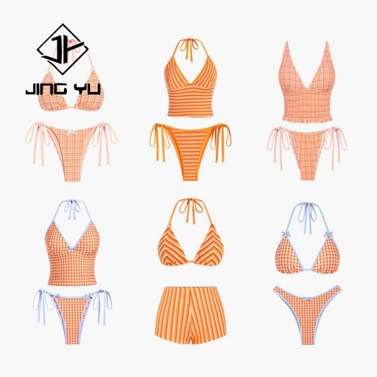 ชุดบิกินี่สั่งทำพิเศษ พร้อมป้ายโลโก้โลหะ เอวสูง ชุดว่ายน้ำบิกินี่แบบสั่งทำพิเศษ ชุดชายหาด พิมพ์ลาย ชุดบิกินี่สองชิ้นแบบผูกเชือก 2025