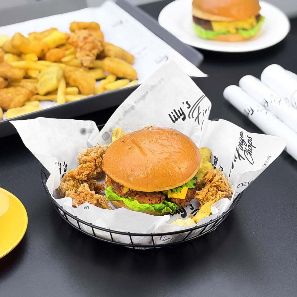 กระดาษห่ออาหารเคลือบ PE ย่อยสลายได้เองตามธรรมชาติ เป็นมิตรกับสิ่งแวดล้อม ป้องกันน้ำมันและไขมัน สำหรับอบเฟรนช์ฟรายส์และเบอร์เกอร์