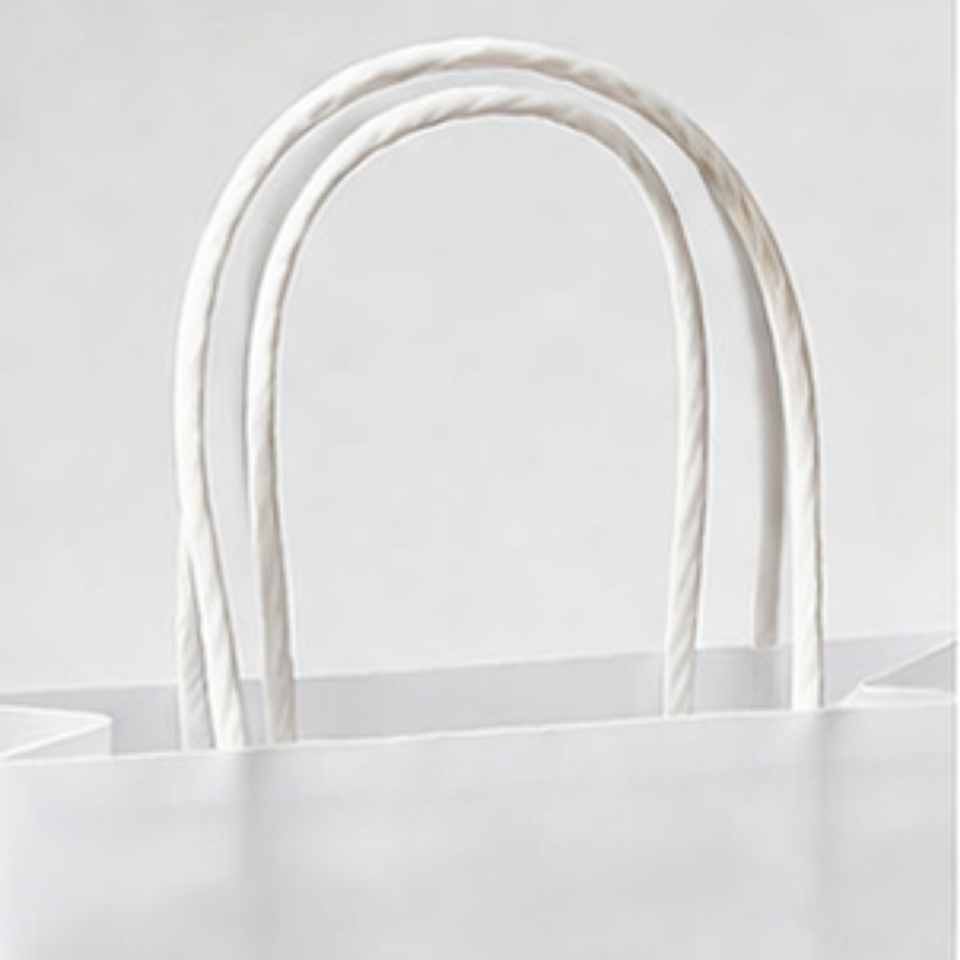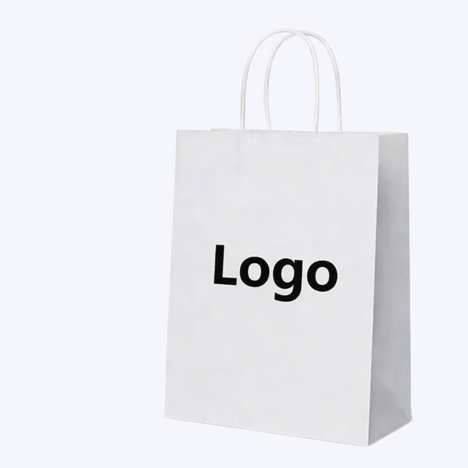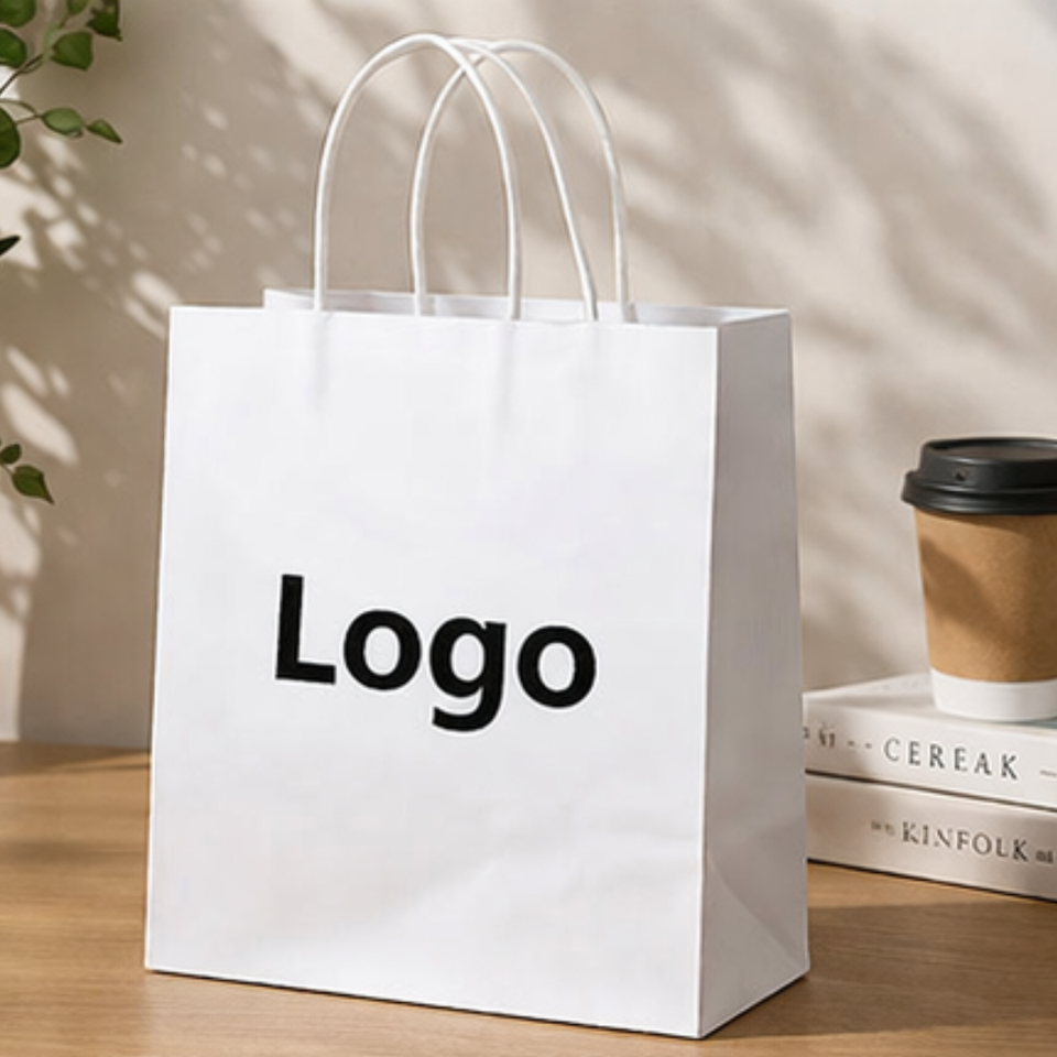 ถุงกระดาษคราฟท์ย่อยสลายได้แบบกำหนดเองพร้อมหูหิ้วแบบบิดเกลียว สีน้ำตาลหรือสีขาว สวยงาม เหมาะสำหรับของขวัญ การจัดส่ง หรือร้านอาหาร